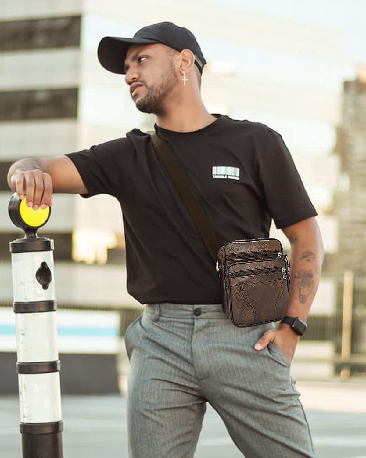 - Leather Messenger Bag: 5 zippers and 5 compartments, made of traditional handicrafts, the classic style reflects the gentleman's temperament. Can be used as a shoulder bag, small messenger bag, perfect travel bag for school, college, work, dating, shopping, daily travel, etc.