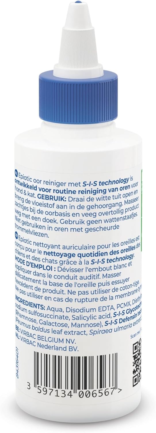 Virbac EpiOtic Cat and Dog Ear Cleaner Solution - Antibacterial and Anti-fungal Dog and Cat Ear Cleaner - 125ml